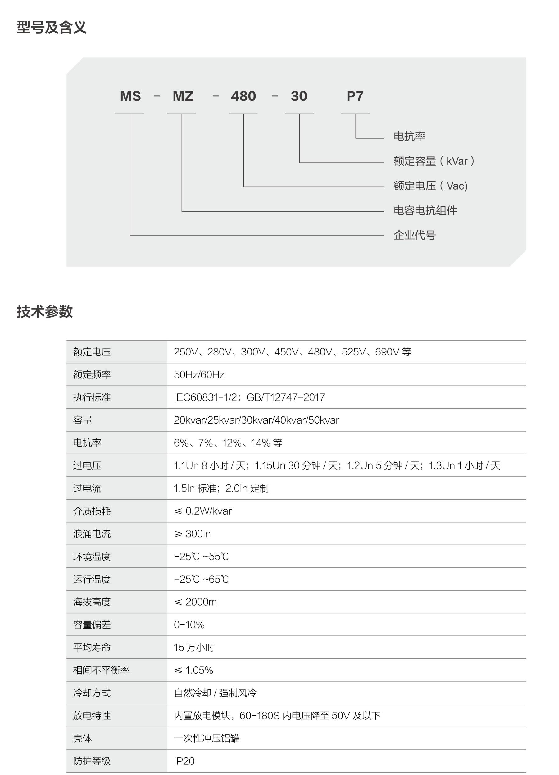 MS-MZ 系列濾波補償組件是為改善電力系統(tǒng)功率因數及諧波濾波而開發(fā)制造的電容電抗組件,該組件分為共補和分補,可分別用于三相和單相的無功補償系統(tǒng)中。補償組件將圓柱形電容器和電抗器組合在一起,使LC串聯回路調諧頻率更加準確恒定,為用戶提供壽命更長、損耗更低、使用更方便、更安全可靠的產品。