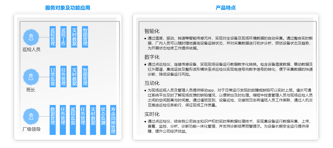 智能點(diǎn)巡檢系統(tǒng)以日常巡檢為主線,集臺賬維護(hù)、缺陷管理、設(shè)備狀態(tài)管理功能為一體、面向大型電氣設(shè)備實(shí)現(xiàn)標(biāo)準(zhǔn)化點(diǎn)巡檢任務(wù)并完成現(xiàn)場數(shù)據(jù)實(shí)時(shí)回傳及診斷分析的綜合應(yīng)用平臺,適用于工業(yè)自動化領(lǐng)域。